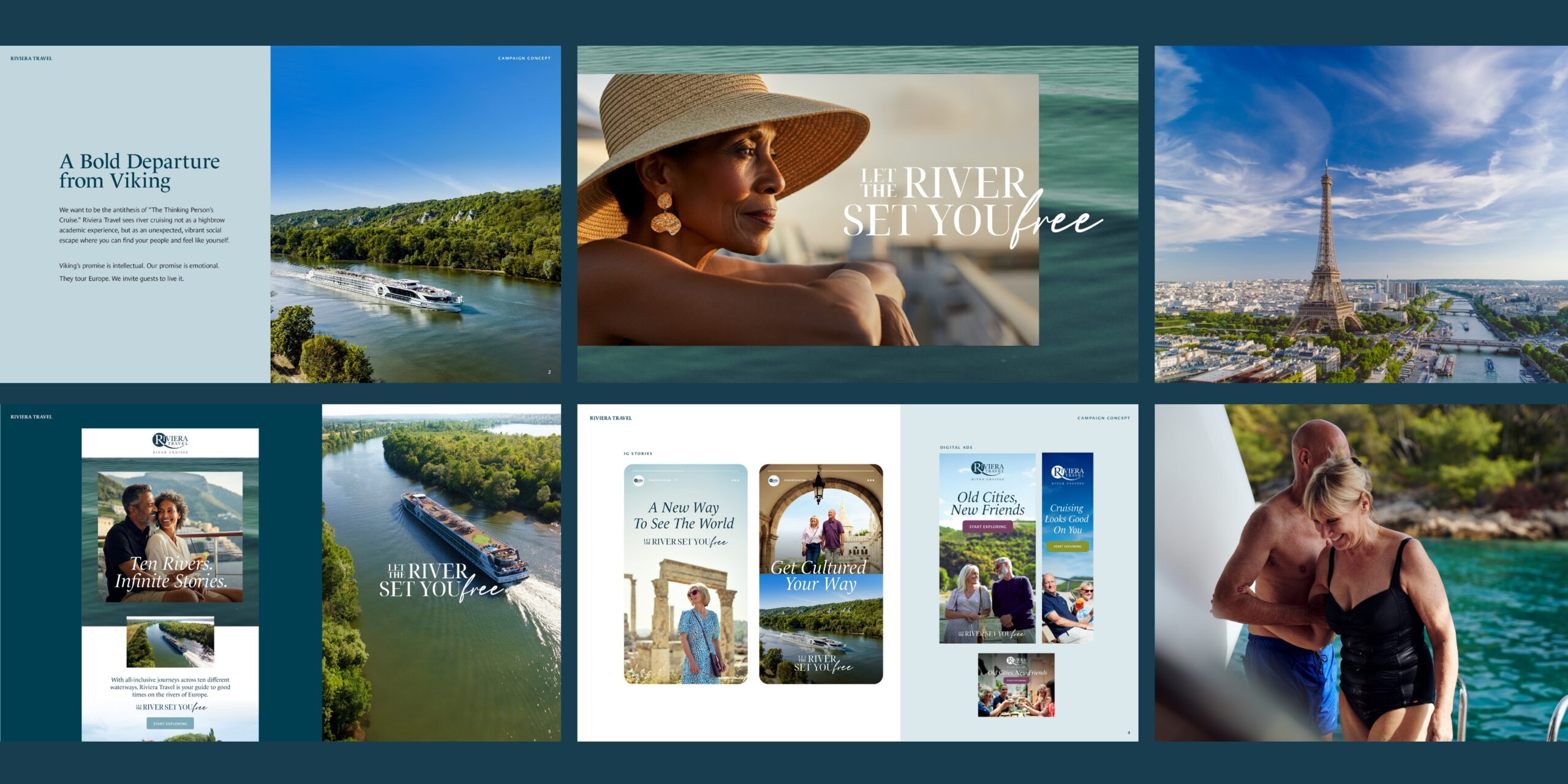 Our engagement began with a comprehensive strategic discovery process. We analyzed the competitive landscape and quickly identified that most river cruise brands lean into highbrow positioning, anchored in intellect, history, and formality. We positioned Riviera as the alternative: emotionally resonant, socially rich, and surprisingly fun. The strategy emphasized that while others toured Europe, Riviera invited you to live it.